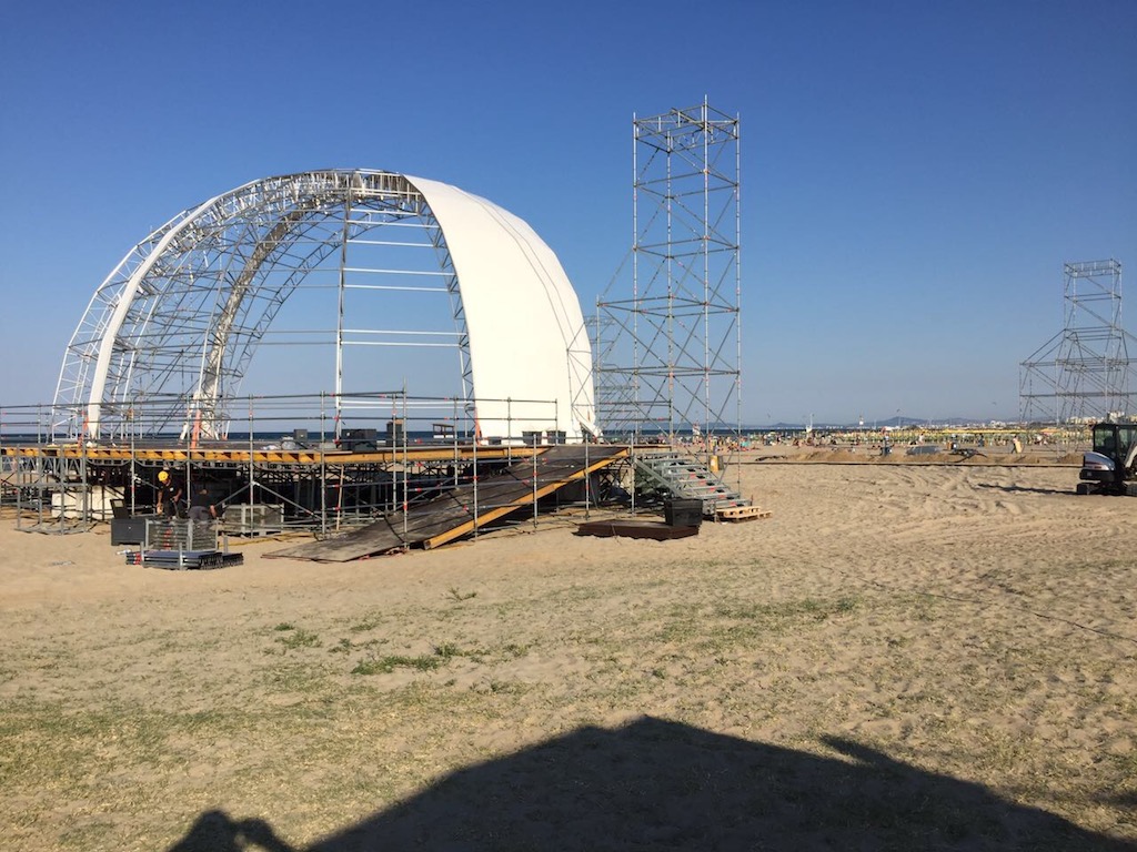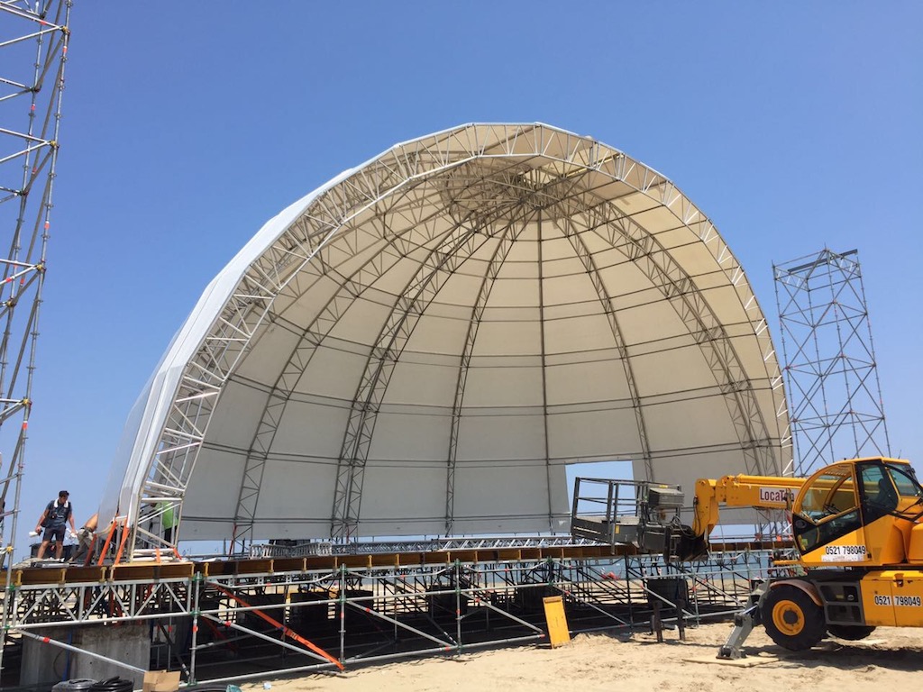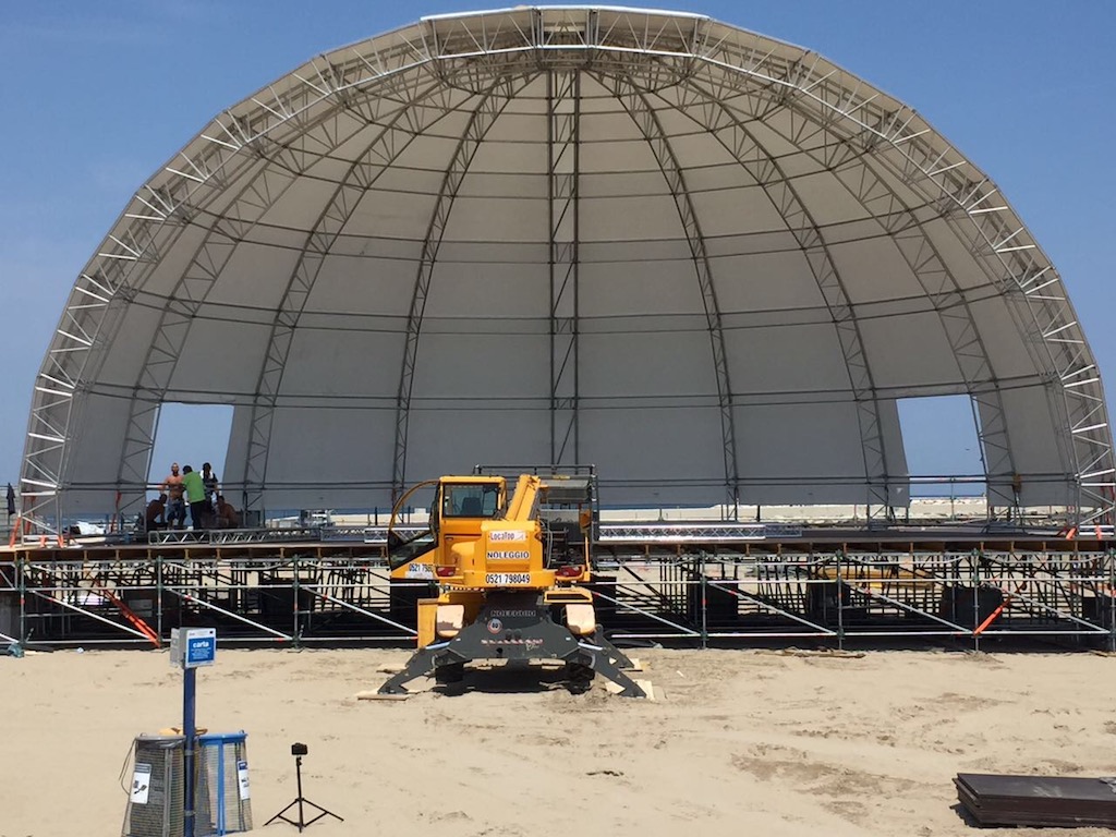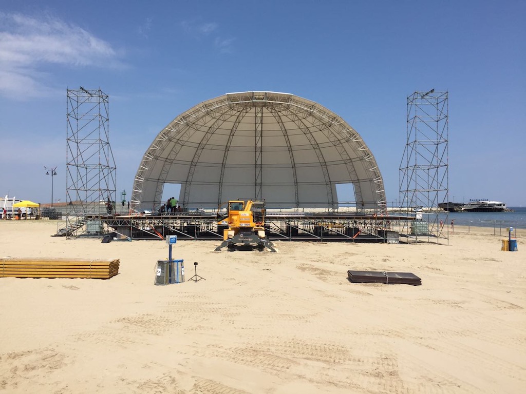 Nella spiaggia di Rimini è in allestimento un’elegante copertura in Alusfera II, cornice perfetta per i prossimi concerti che si terranno durante l’Evento dell’estate Beach Arena. Dal 24 giugno al 30 luglio, Beach Arena ospiterà concerti live e DJ set di artisti nazionali ed internazionali dal tramonto fino a tarda sera. Potrete vedere altre foto e video dopo l’inaugurazione dell’evento! Rimanete sintonizzati!
