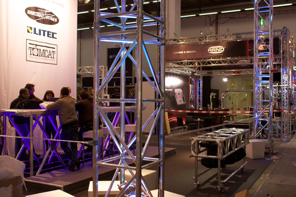 Fornita di 4 ruote girevoli per una facile manovrabilità e di perni per la connessione dei tralicci. Ogni truss è stata disegnata per portare una barra luci completa di teste mobili. La barra è agganciata al corrente principale consentendo alle luci di muoversi. Questo design riduce lo spazio richiesto per la movimentazione nel camion.