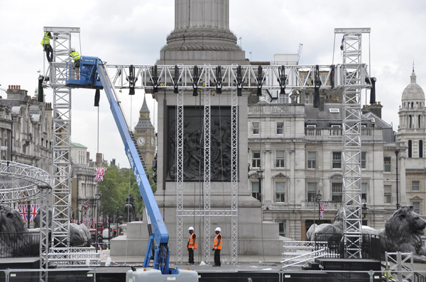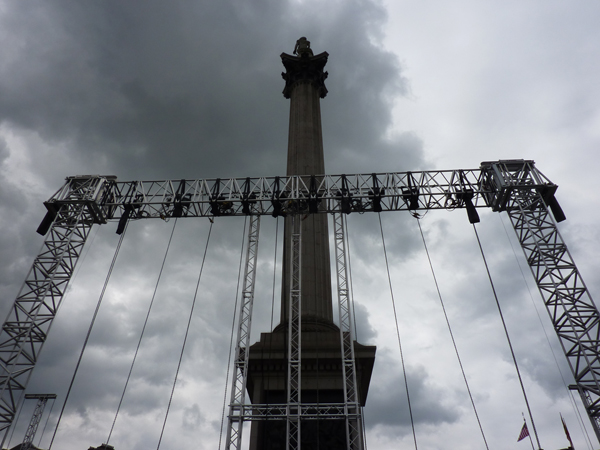 Per l’occasione Actus Industries ha fornito un ground support in RL105A e QX30SA, montato a Trafalgar Square. Per costruire portali LED LITEC utilizza esclusivamente tralicci della gamma standard, che trovano utilizzo nei concerti ed altri eventi in genere.